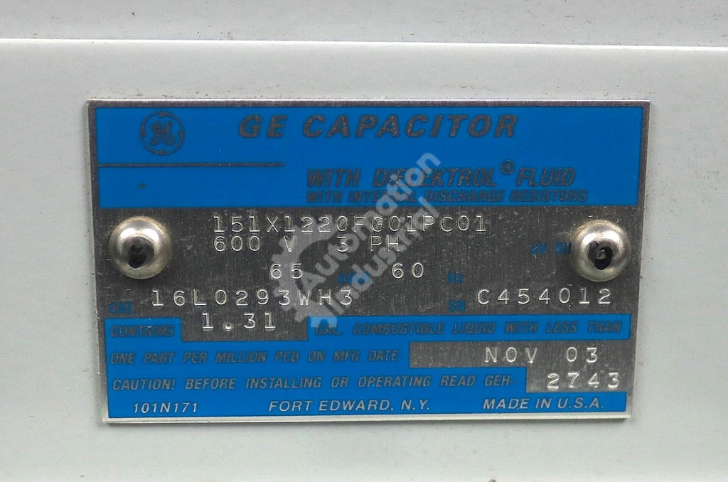 151X1220FG01PC01 By General Electric 600VAC 65Kvar 60Hz Capacitor |