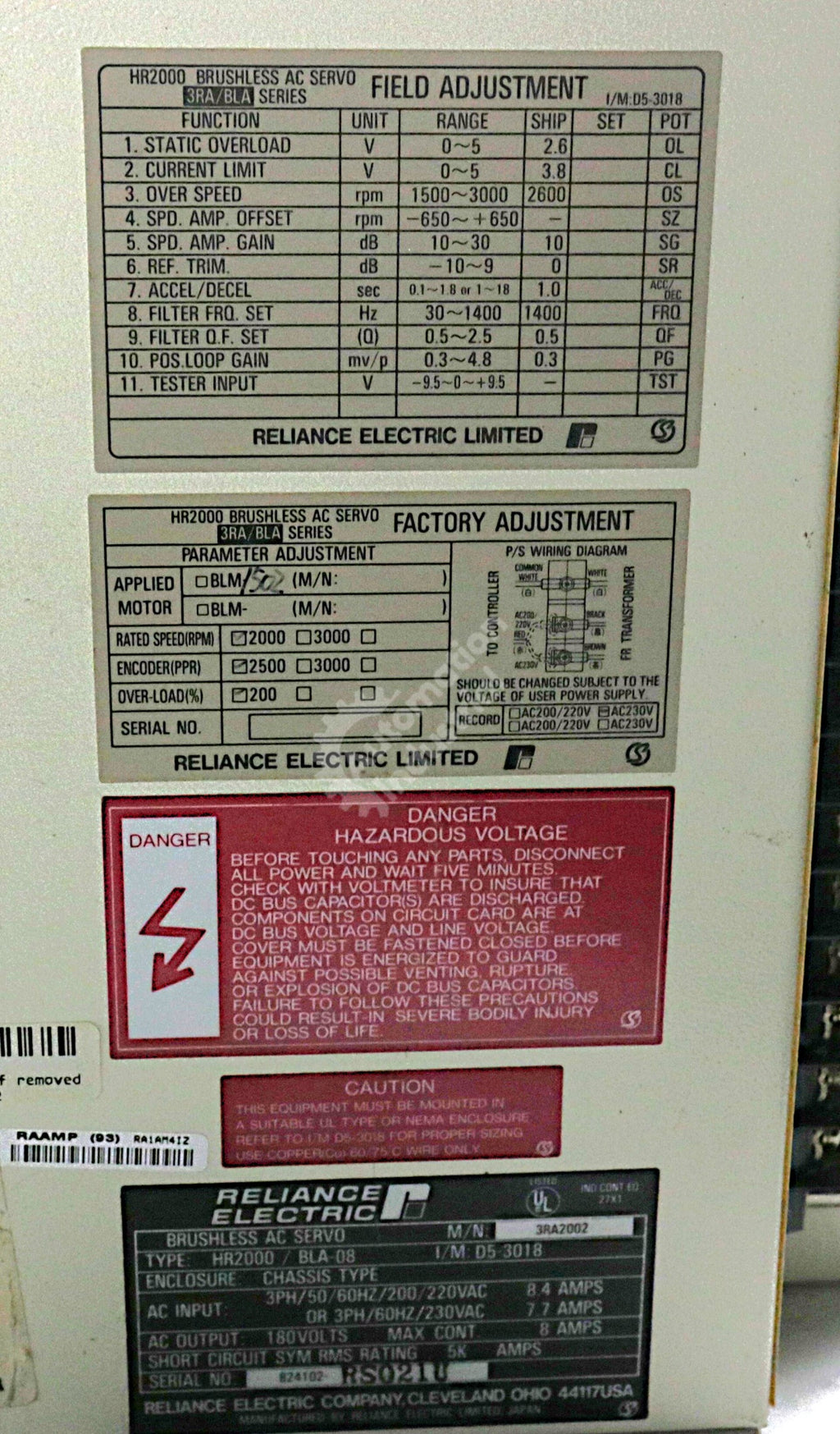 3RA2002 By Reliance Electric HR2000/BLA-08 230VAC 2HP HR2000 Brushless AC Servo |