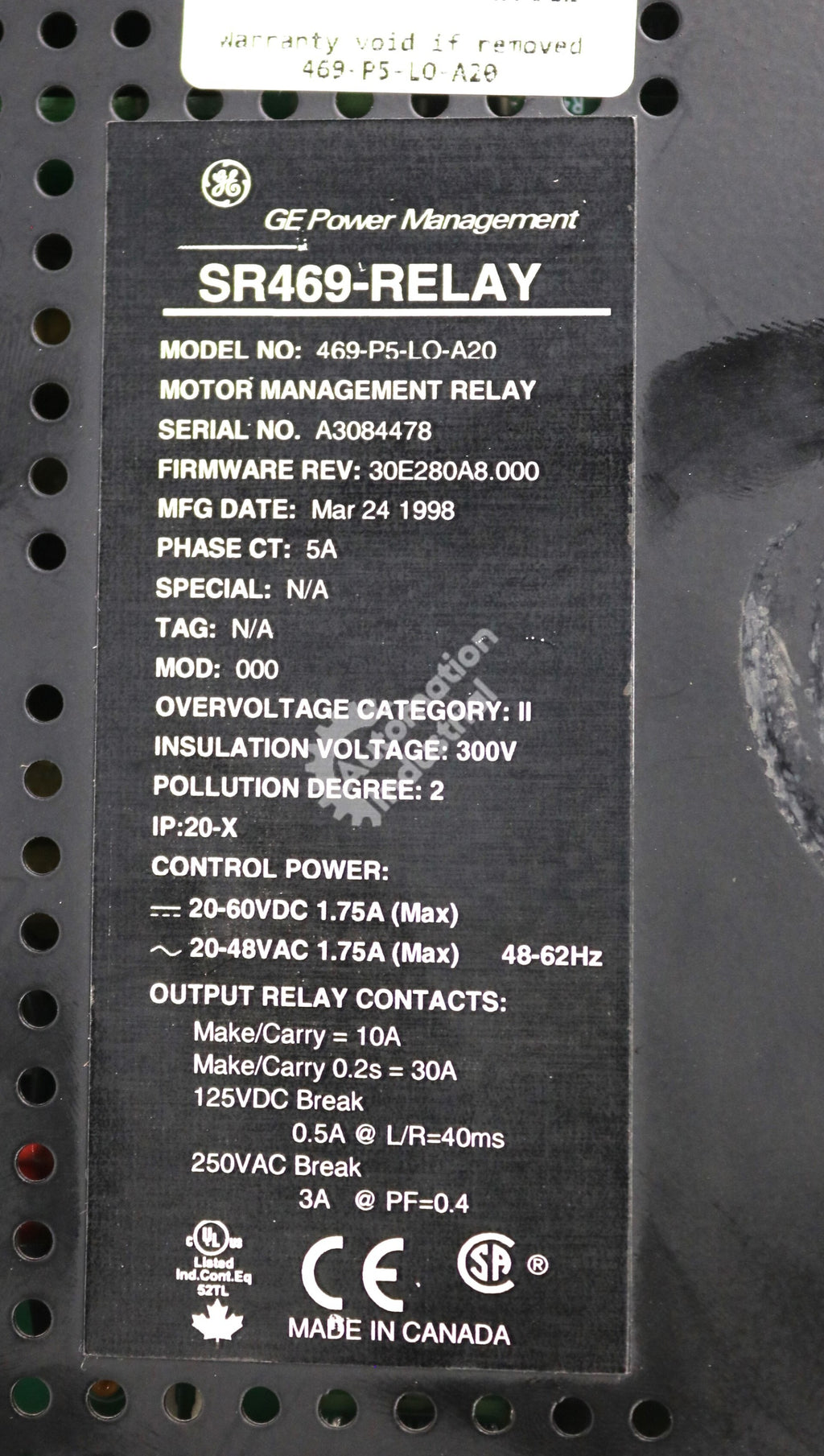 469-P5-LO-A20 by GE Multilin Motor Management Relay 469 |