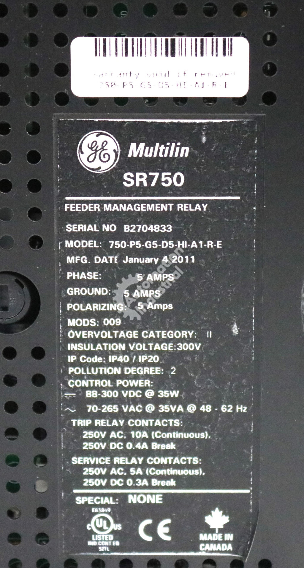 750-P5-G5-D5-HI-A1-R-E By GE Multilin Feeder Management Relay |