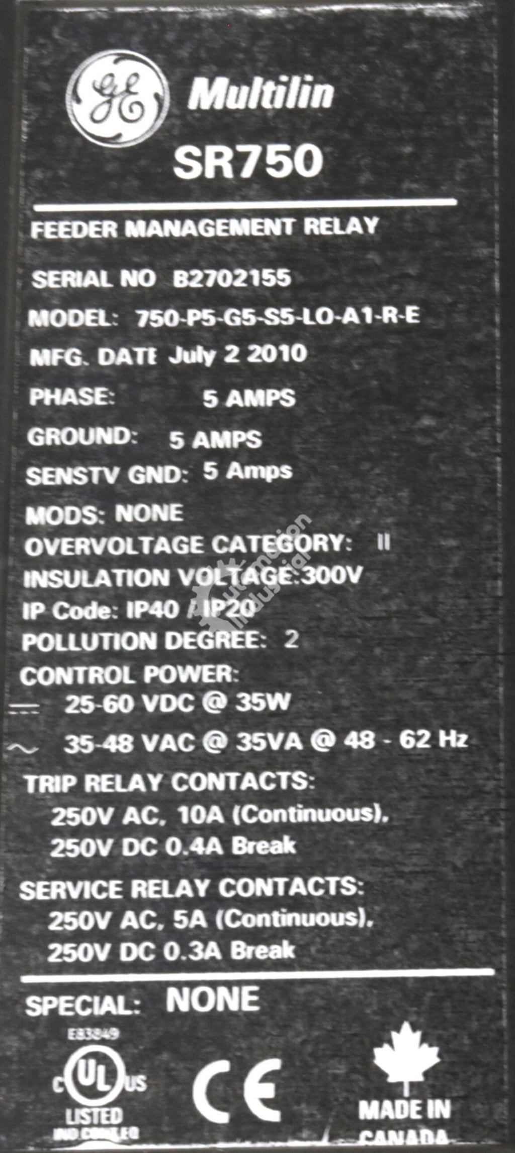 750-P5-G5-S5-LO-A1-R-E By GE Multilin Feeder Power Management Relay SR750 |