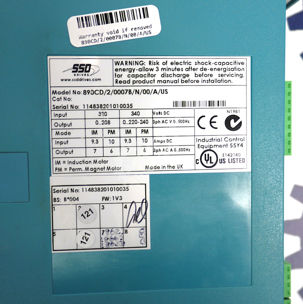 890CD/2/0007B/N/00/A/US By Parker Computers 7AMP 230VAC Variable Frequency Drive |