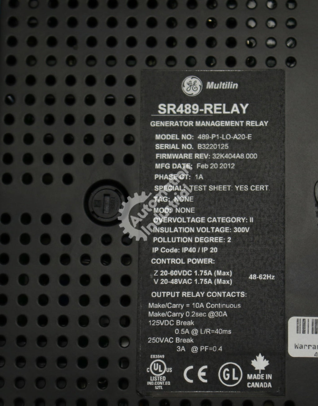 The 489-P1-LO-A20-E had a long life cycle from GE Multilin making the installed base throughout the US (and the globe) significant. As a result, replacement parts and surplus relays are readily available. Additionally, the P1 1A Phase CT secondaries make this generator protection relay specifically suited to a wide variety of applications - Automation Industrial Quality Assurance Manager