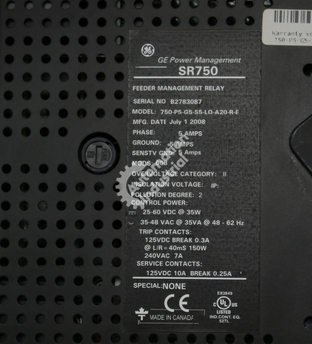GE Multilin 750-P5-G5-S5-LO-A20-R-E Feeder Management Relay |