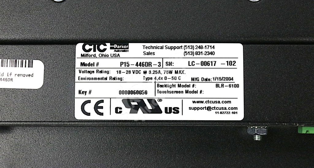 | Description | P15-446DR By CTC Parker Automation 18-28V 10-inch Touchscreen Operator Interface |